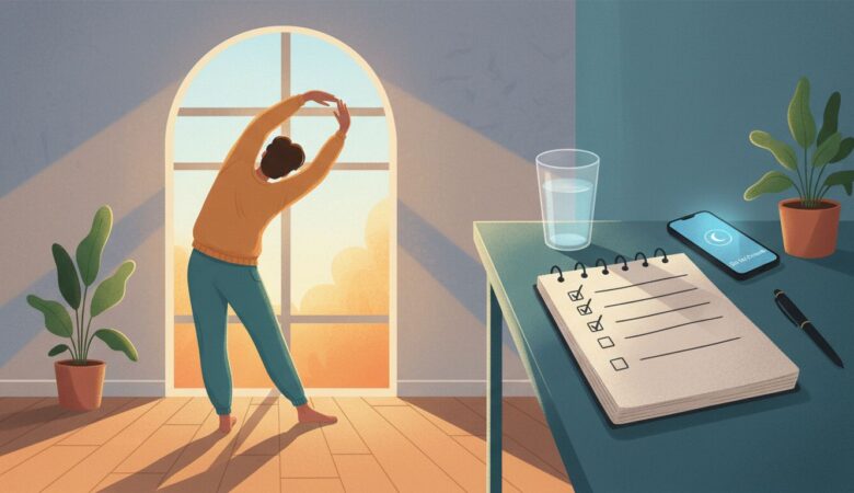 - از چکلیست صبح استفاده کنید: آب، تنفس عمیق ۵ دقیقه، سه اولویت.